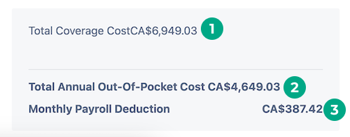Note: If you have flexible dollars (money your employer gives you to pay for your benefits), we’ll also display the total amount of flexible dollars used to cover your total coverage cost.